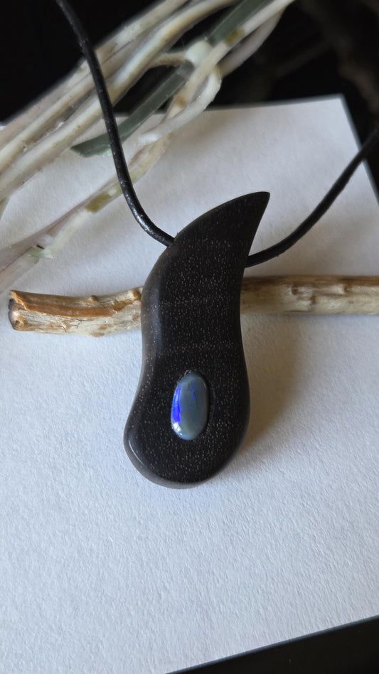 Ebenholz mit Boulder Opal, Opal Holz Anhänger, 41 x 12 x 8 mm, gebohrt, an verstellbarem Lederband