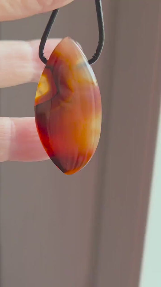 Montana Achat Karneol Achat, Anhänger Navette, 43 x 20 x 5 mm, gebohrt, an verstellbarem Lederband